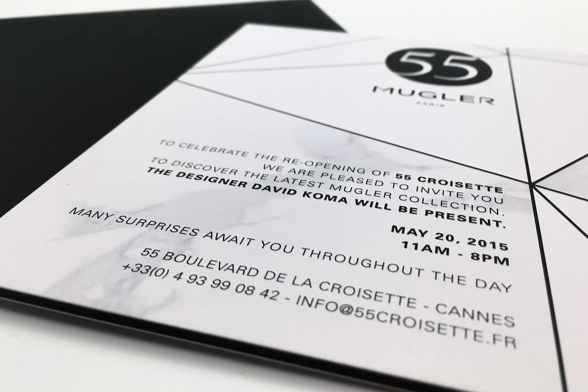 Per conto di Mediactive Group, agenzia francese specializzata in comunicazione e branding, curiamo l’immagine di 55 Croisette – concept store e multibrand boutique che celebra l’eleganza e l’avanguardia del lusso – occupandoci di personalizzazione, creazione e print management dei materiali per eventi e presentazioni delle collezioni moda.