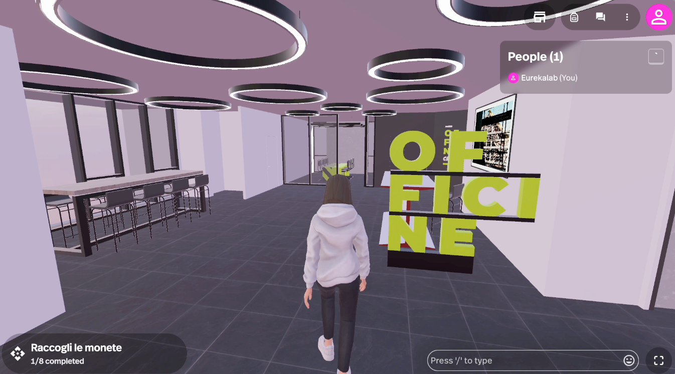Abbiamo ricreato in ambiente VR gli 800 mq delle Officine Credem di Reggio Emilia, l’hub di innovazione del gruppo aperto a dipendenti, imprenditori, startup e università.